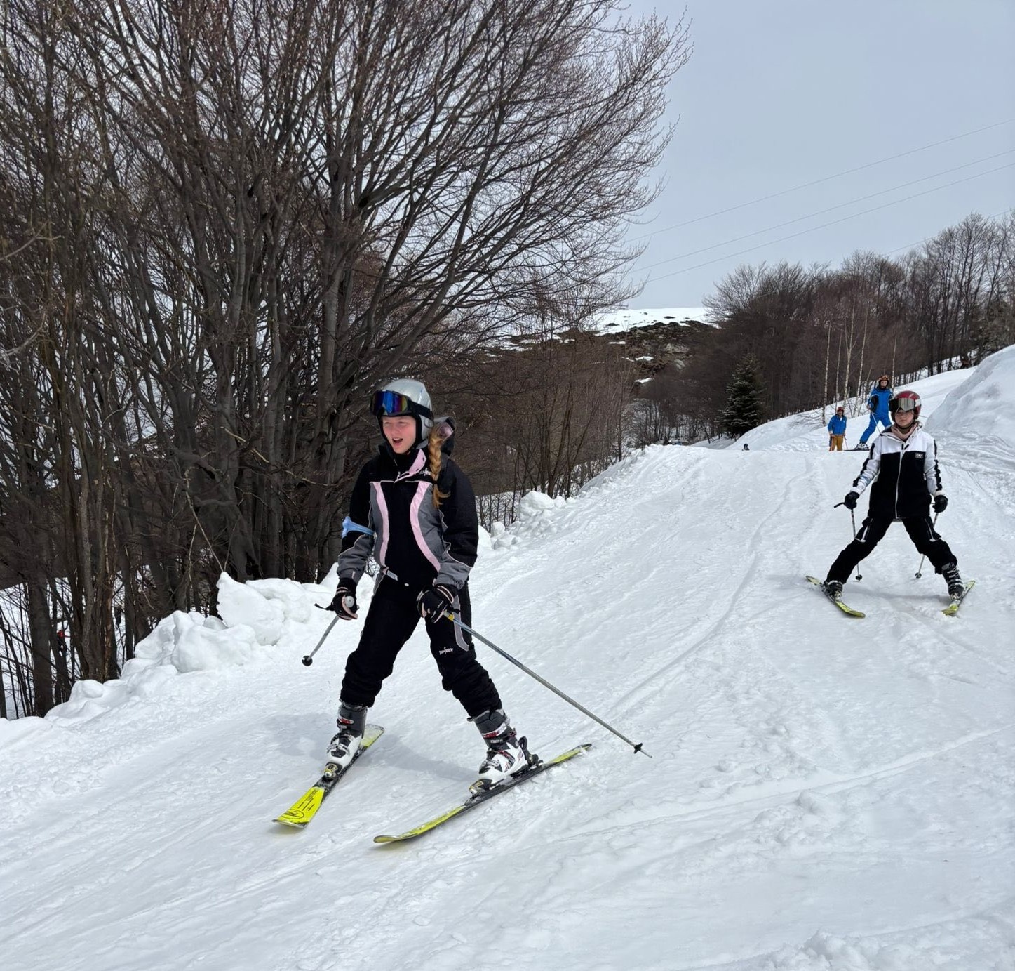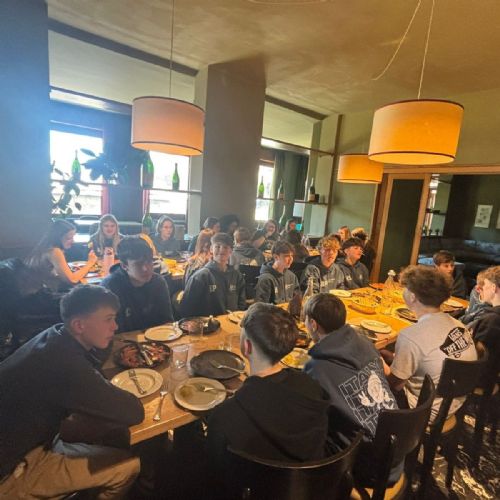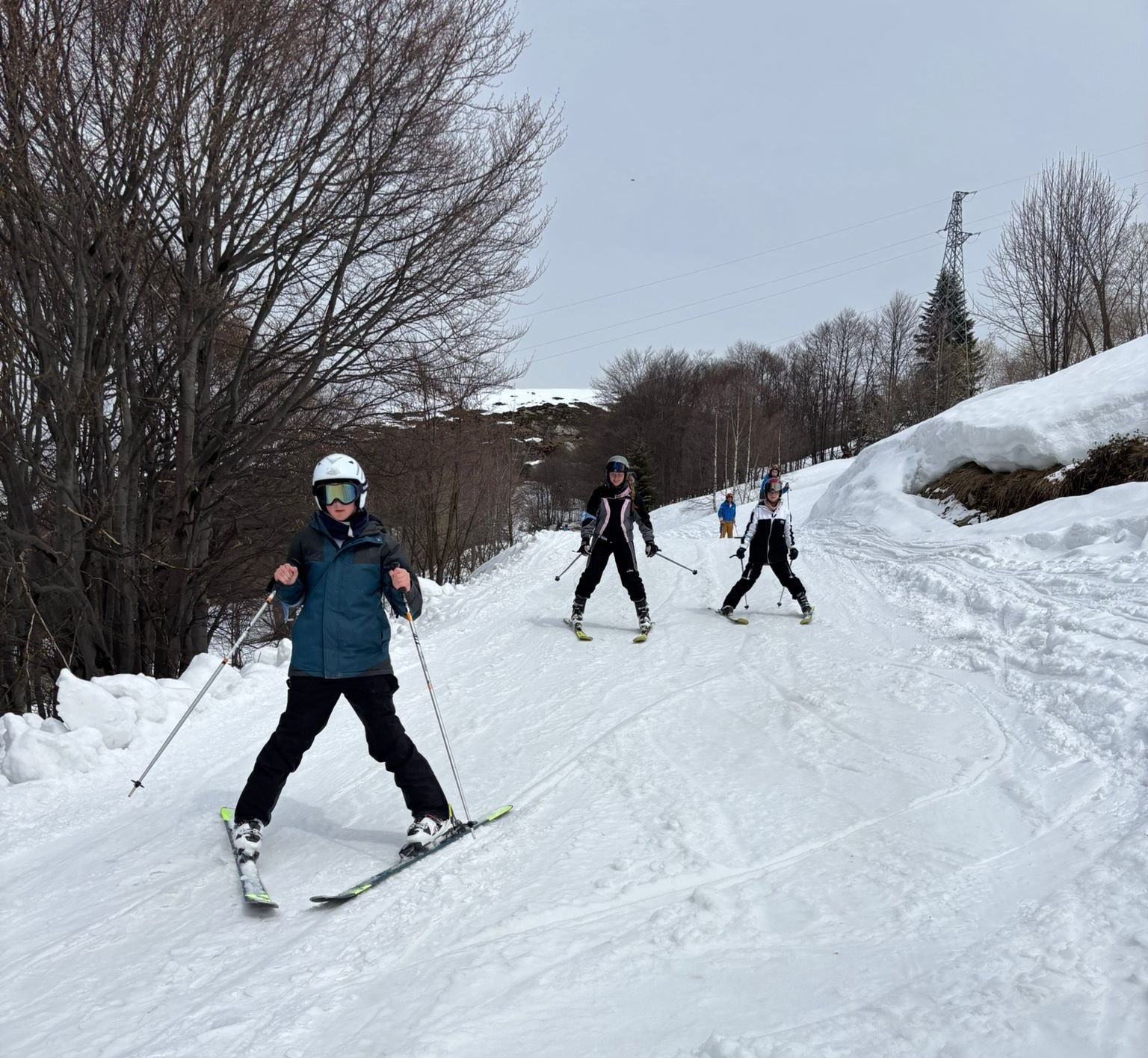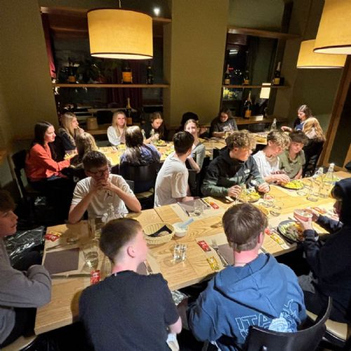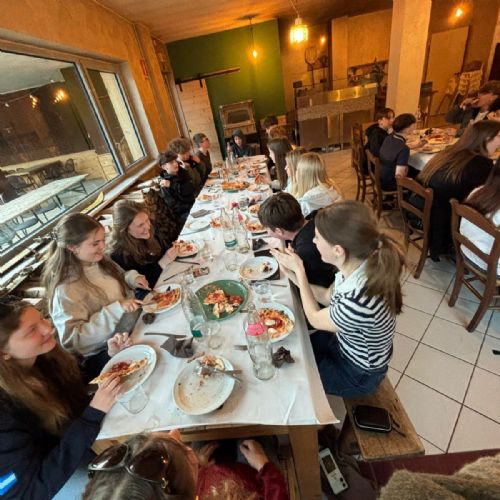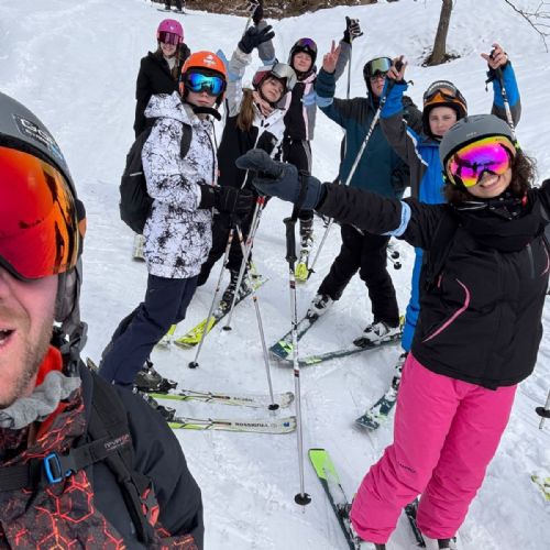 Day 4: Yesterday was so picturesque! Bright blue skies, loads of snow and temperatures that got up to 18° All groups are off skiing the resort at varying levels. It’s incredible to see their progress! Last night we went to a local restaurant for a pizza night. The pizzas were to die for! After dinner was some down time at the hotel. Late breakfast this morning as we are skiing this afternoon and tonight. We cannot wait for the night skiing!